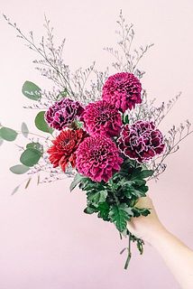 マム「ミッドナイトパープル」を主役に赤ワイン色のお花を集めました。