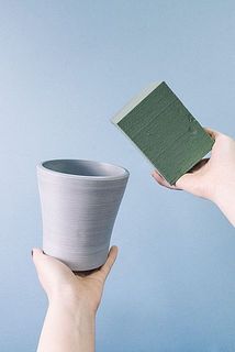 - 吸水が完了したらポットにいれて、花やグリーンをさしながらアレンジメントしてみて。