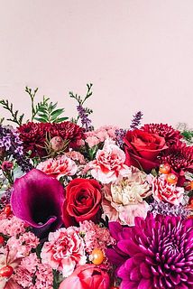 この季節にぴったり!ワインカラーのおしゃれなブーケ🍷どんなお花が届くかは、箱を開けるまでのお楽しみ。