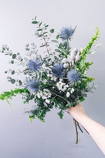 初めてさんに大人気!ナチュラルカラーのエリンジウムを主役に。ドライになりやすい旬な草花を合わせました🍃お世話も比較的簡単です。