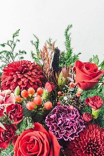 ホットワインのような鮮やかな赤色、ワインカラーの花を合わせたおまかせブーケ🍷