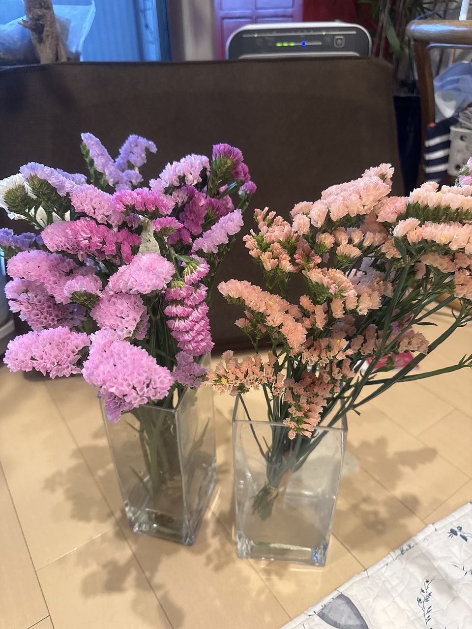 何色かあってキレイでした でも、スターチスは私の田舎だとわりと安い値段で出てることがあるので、今回もう少しボリュームあるのを想像してました でも、飾ったらまあまあキレイで ドライフラワーにするといいなあと思ってます