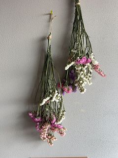 ピンクが多めでした。色分けしてみたほうが好みの配色になりました。スターチスは花束でも脇役のイメージでしたが、スターチスのみでもボリュームあるしとっても可愛いんだなと思いました。スワッグでも楽しめるのでお得感あります。