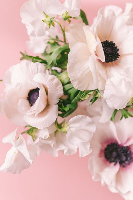 ふんわりホワイトのアネモネとスイートピー