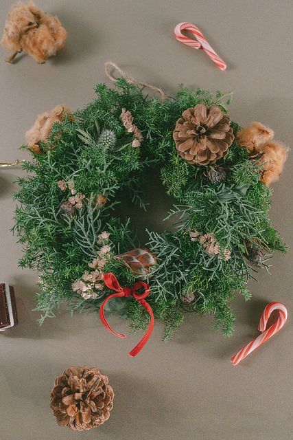 ナチュラルグリーンのリースキット(キャンドル付き)